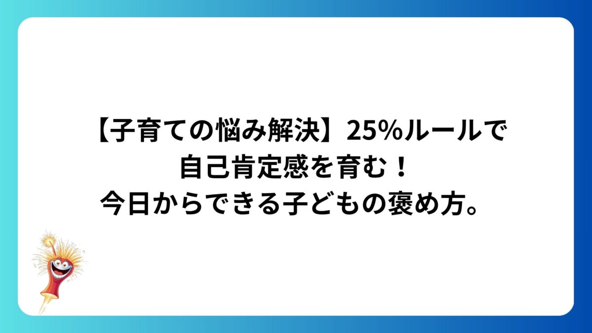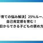 【子育ての悩み解決】25%ルールで自己肯定感を育む!今日からできる子どもの褒め方。